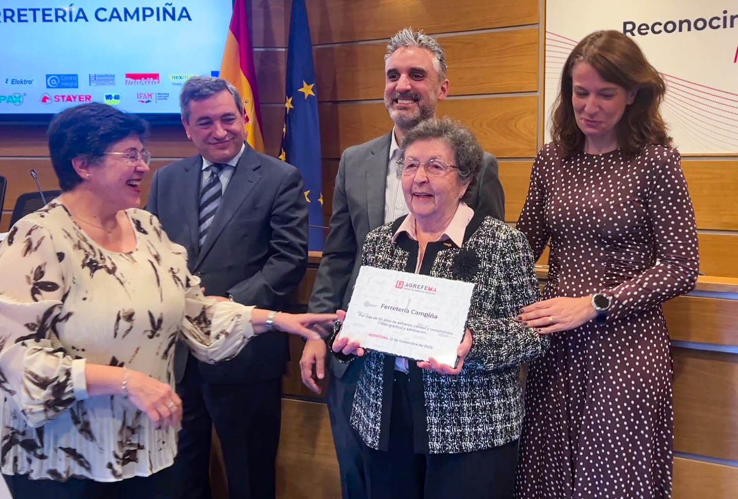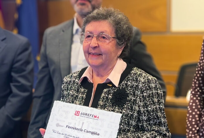 Ana acompañó a su madre el pasado día 12 cuando el Gremio de Ferreteros de Madrid le entregó una placa por su trayectoria. Fue en un evento en el que la asociación también homenajeó a un grupo de ferreterías que ya superan el medio siglo de vida, tal y como publicó Iberferr. La Ferretería Dinámica de noviembre incluye un vídeo sobre este evento, que también recoge el testimonio de viva voz de Ana María García.
