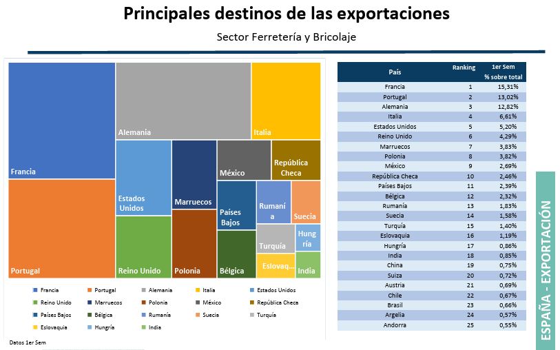 El gráfico sitúa a Italia justo por detrás de Francia (15,31 %), Portugal (13,02 %) y Alemania (12,22 %), y evidencia el protagonismo de los principales mercados europeos en la estrategia exterior del sector.