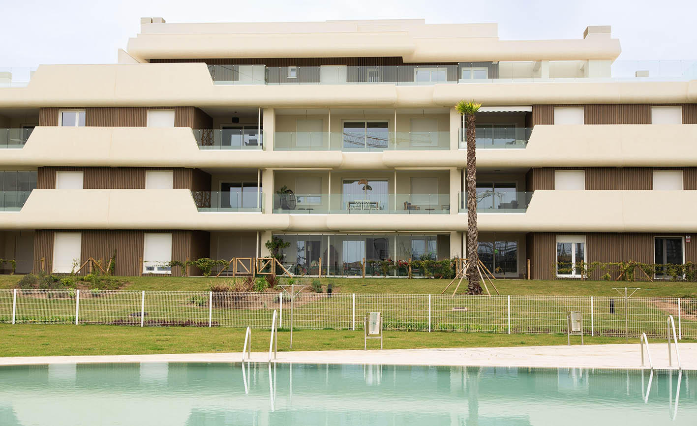 Sika ha dejado patente todas las ventajas de este producto en el residencial Los Colibríes I, ubicado en Isla Canela (Ayamonte, Huelva), un conjunto residencial de obra nueva, expuesto a altas exigencias ambientales, donde se instalaron 7.000 metros cuadrados del sistema Sikatherm® para la construcción de fachadas con SATE.