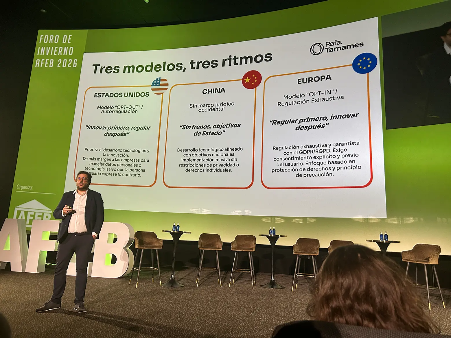 La sobrerregulación europea resta competitividad y asfixia la innovación, pero también afecta al desarrollo de la IA. Casi nueve de cada diez empresas (el 88%) ya la usa de forma regular, pero sólo un 5% es capaz de sacarle algún tipo de rentabilidad. Lo hacen las grandes empresas que la aplican en los procesos y en la atención al cliente, pero casi todas las demás deberán esperar para conseguirlo, según puso de manifiesto el emprendedor, tecnólogo, y apasionado por la IA, Rafa Tamames.