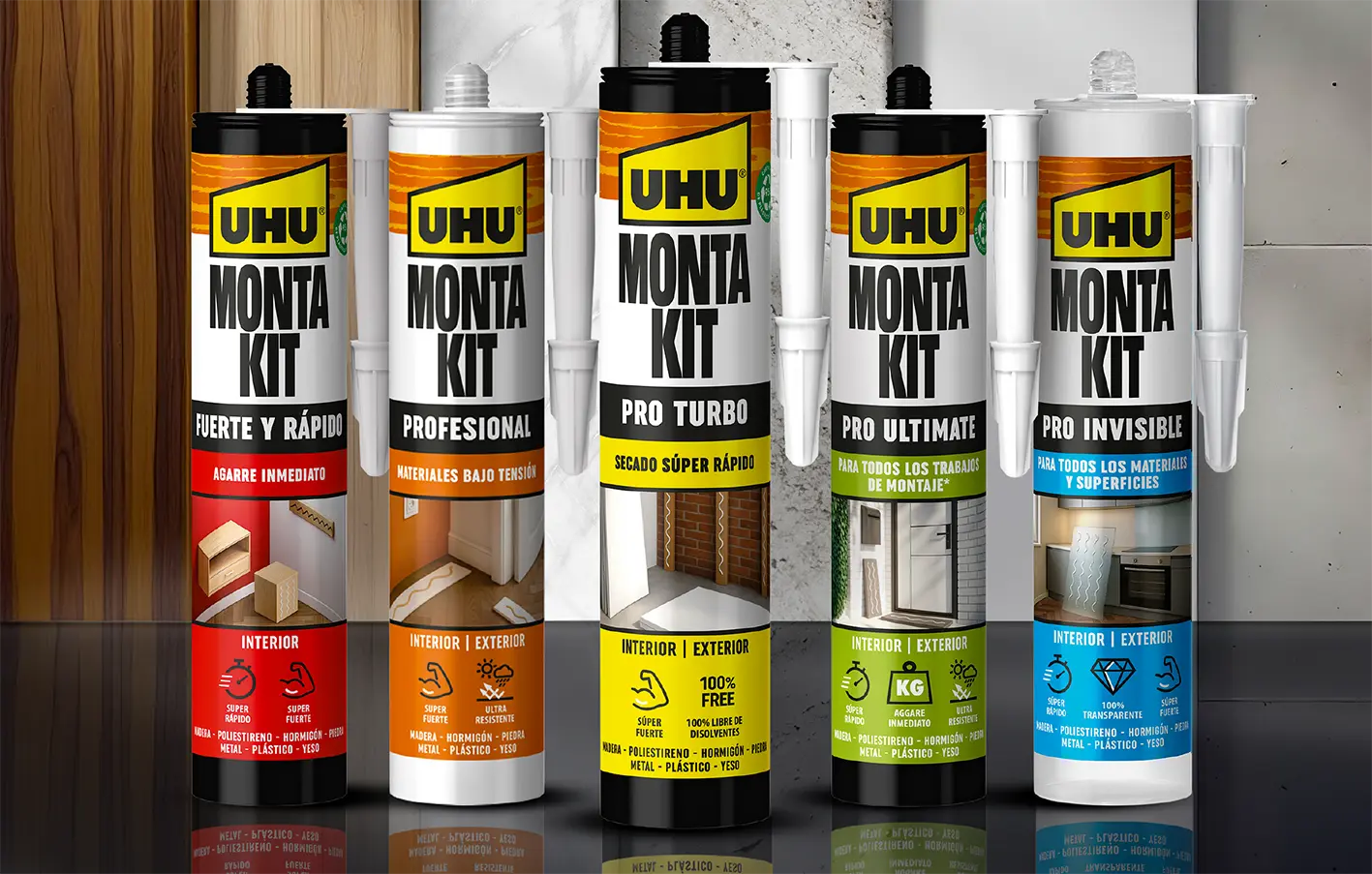 UHU (Bolton Group) ha renovado la gama de adhesivos de montaje Monta Kit que presentó en enero para hacerlos más versátiles, sostenibles y modernos. Lo ha hecho sobre tres pilares: el uso de la última generación de polímeros; una actualización del diseño de los cartuchos y del «packaging»; y el compromiso con la sostenibilidad, incorporando cartuchos fabricados con un 95% de plástico reciclado (PCR), lo que supone una reducción total de 86.000 kg de plástico virgen.