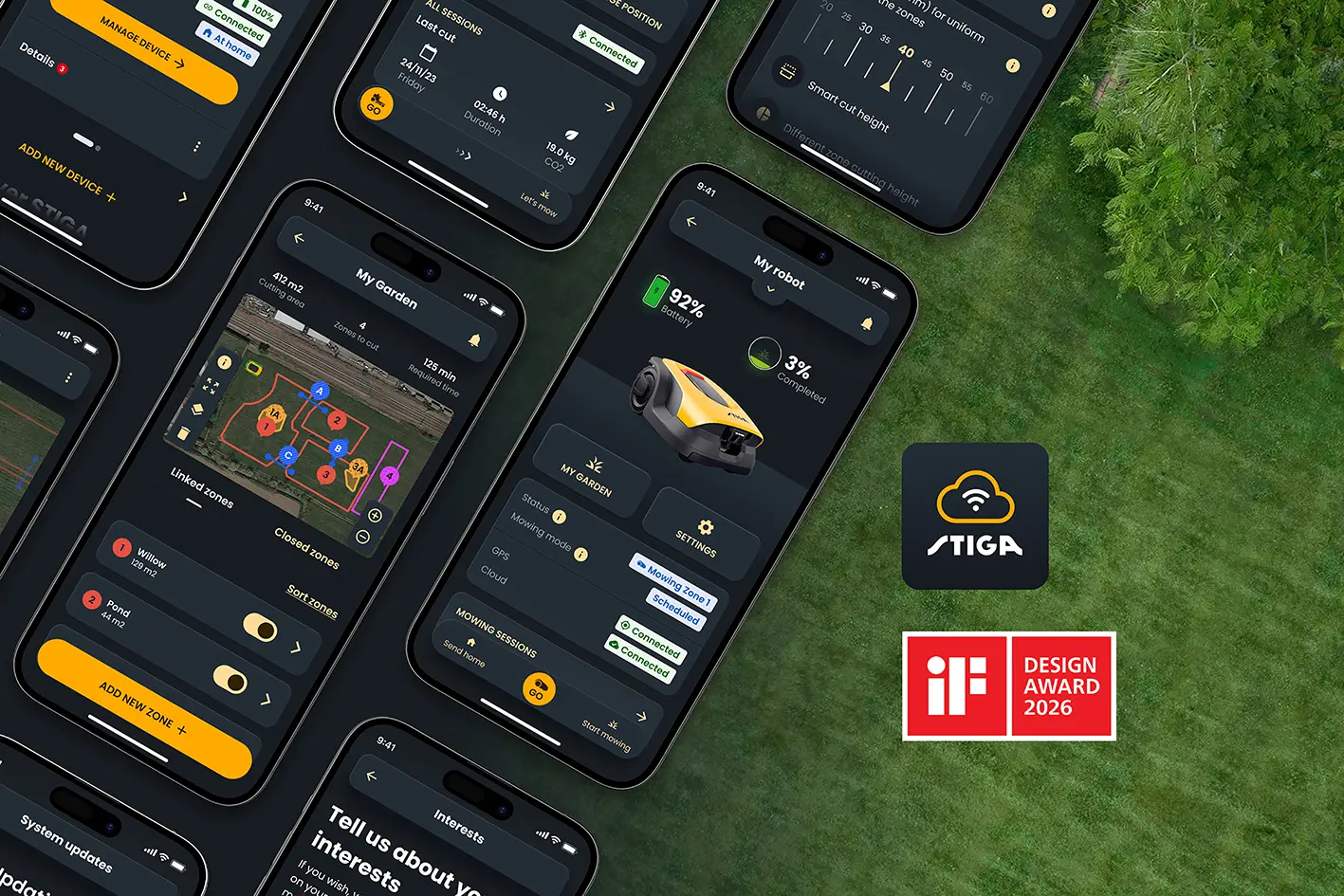 La aplicación STIGA.GO, galardonada con el Red Dot Design Award 2025, también ha sido premiada por el jurado de iF en las categorías de Diseño de Marca y Comunicación y Apps/Software. La app permite controlar de forma remota toda la gama de cortacéspedes de Stiga de manera intuitiva y accesible.
