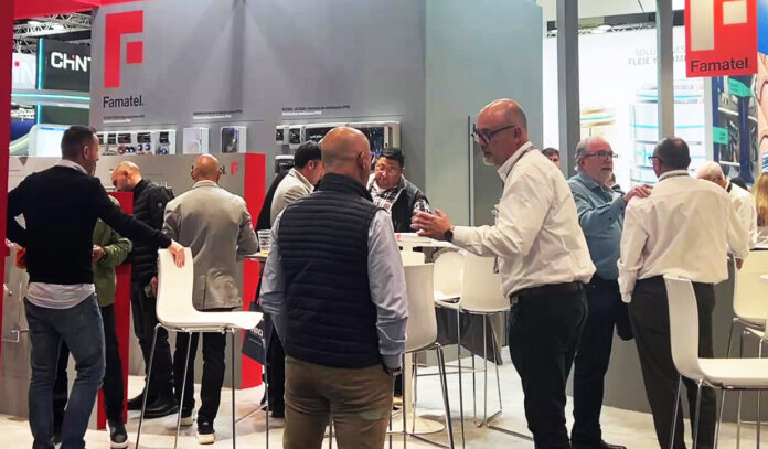 Famatel, el fabricante catalán de material eléctrico, ha presentado en Matelec un novedoso producto de fabricación propia. Se trata de la gama de armarios o cuadros de poliéster para instalaciones solares, una solución que resuelve los problemas de capacidad que se necesitan en este tipo de trabajos. Aguantan una temperatura de hasta 960 grados centígrados y son autoextinguibles.