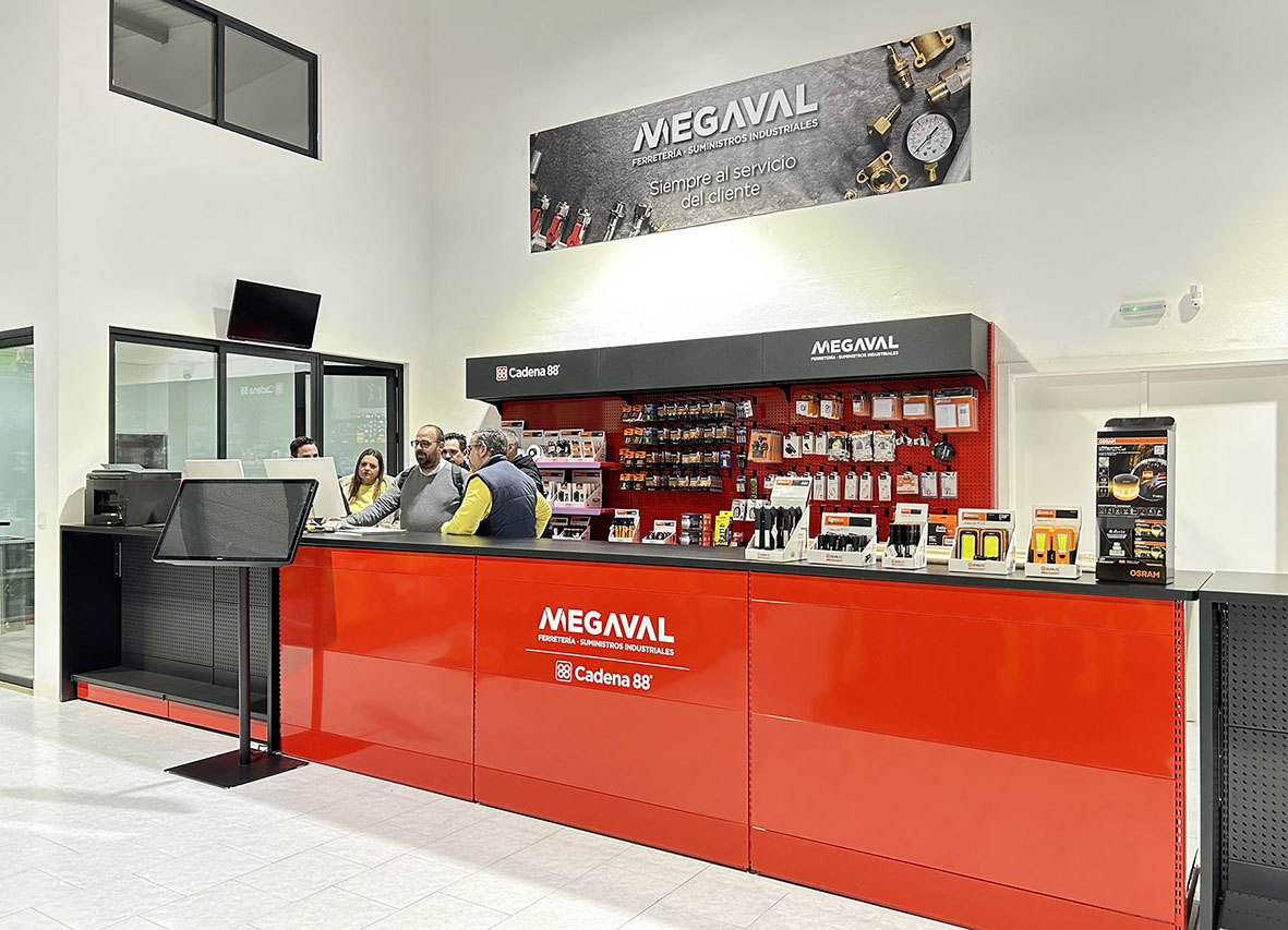 Megaval, inaugurada el 19 de diciembre, se ha instalado en el polígono industrial El Monete, ubicado a la entrada de la población. Sobre una nave de 540 metros cuadrados, han acondicionado una sala de ventas de 380 metros cuadrados totalmente diáfana y libre de columnas, que ha permitido desarrollar un espacio comercial muy funcional para poner a disposición del público gamas de producto presentado en extensos lineales para su venta en autoservicio asistido.