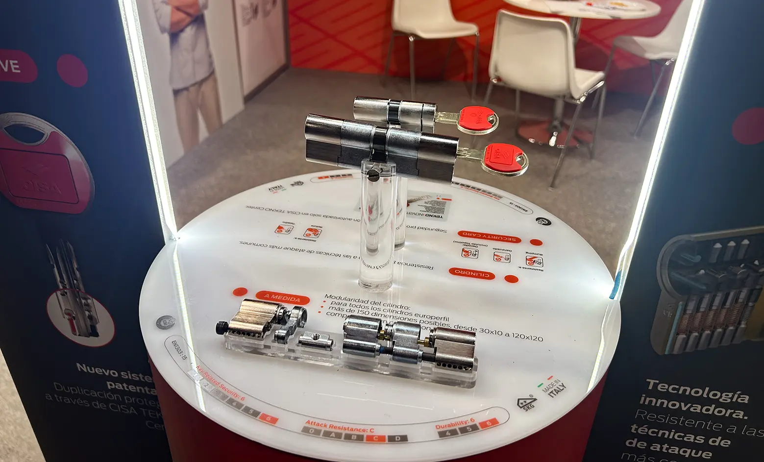 También ha expuesto el cilindro TEKNO iNOVATE que combina una tecnología de vanguardia y nuevas patentes que garantizan una mayor protección a las personas en los lugares donde viven y trabajan, tal y como explica Raúl Ortiz, director de Marketing de CISA, en este vídeo realizado en la feria.